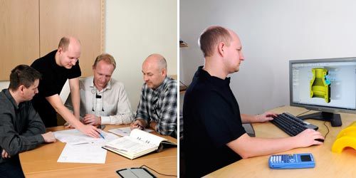 Med hjälp av CAD och analysprogram hjälper vi till med allt från idé, konstruktionsförslag, verktygsframtagning och produktion. Från prototyp till fullskalig produktion. Detta i kombination med marknadens bredaste och flexiblaste produktionsutrustning gör att vi kan hantera de flesta materialtyper och tillverkningsmetoder. Vi förfogar dessutom över ett laboratorium där vi kontinuerligt följer upp produktionsresultaten, allt från råvarukontroll till egenskaper på den färdiga produkten.